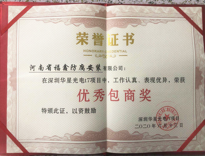 河南省福鑫防腐安裝有限公司的前身為濮陽(yáng)市化工機(jī)械防腐公司,成立于1993年9月,隸屬于濮陽(yáng)市經(jīng)貿(mào)委主管,系防腐、保溫二級(jí)國(guó)有企業(yè)。隨著社會(huì)的發(fā)展、改革的不斷深入,根據(jù)上級(jí)主管部門(mén)的文件精神,于1999年3月以市體改委函字【1999】3號(hào)文改制為股份有限公司,屬省廳批準(zhǔn)的防腐、保溫一級(jí)企業(yè)。中國(guó)質(zhì)量服務(wù)、信譽(yù)AAA級(jí)企業(yè)、河南省守合同重信用企業(yè)。公司于2003年通過(guò)了IS09001:2000質(zhì)量、環(huán)保、健康三體系認(rèn)證。